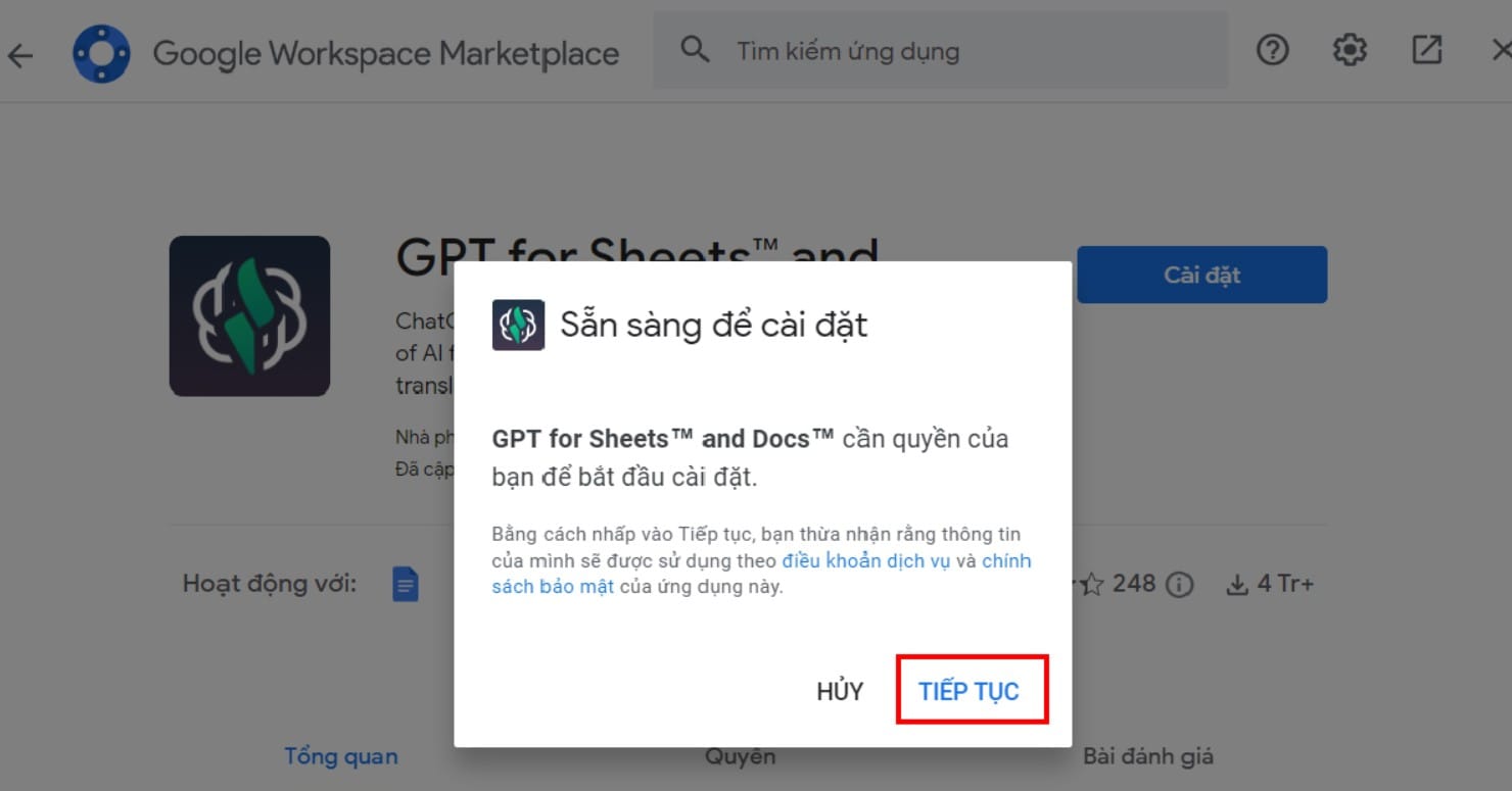 Bước 3 : Cài đặt GPT for Sheet and Docs